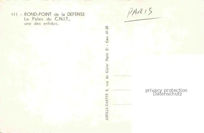 PARIS_75 Rond-Point de la Défense Palais du C.N.I.T. une des entrées postalisch nicht gelaufen 1921-1965 Erhaltung siehe scans [FriedD77] Frierer