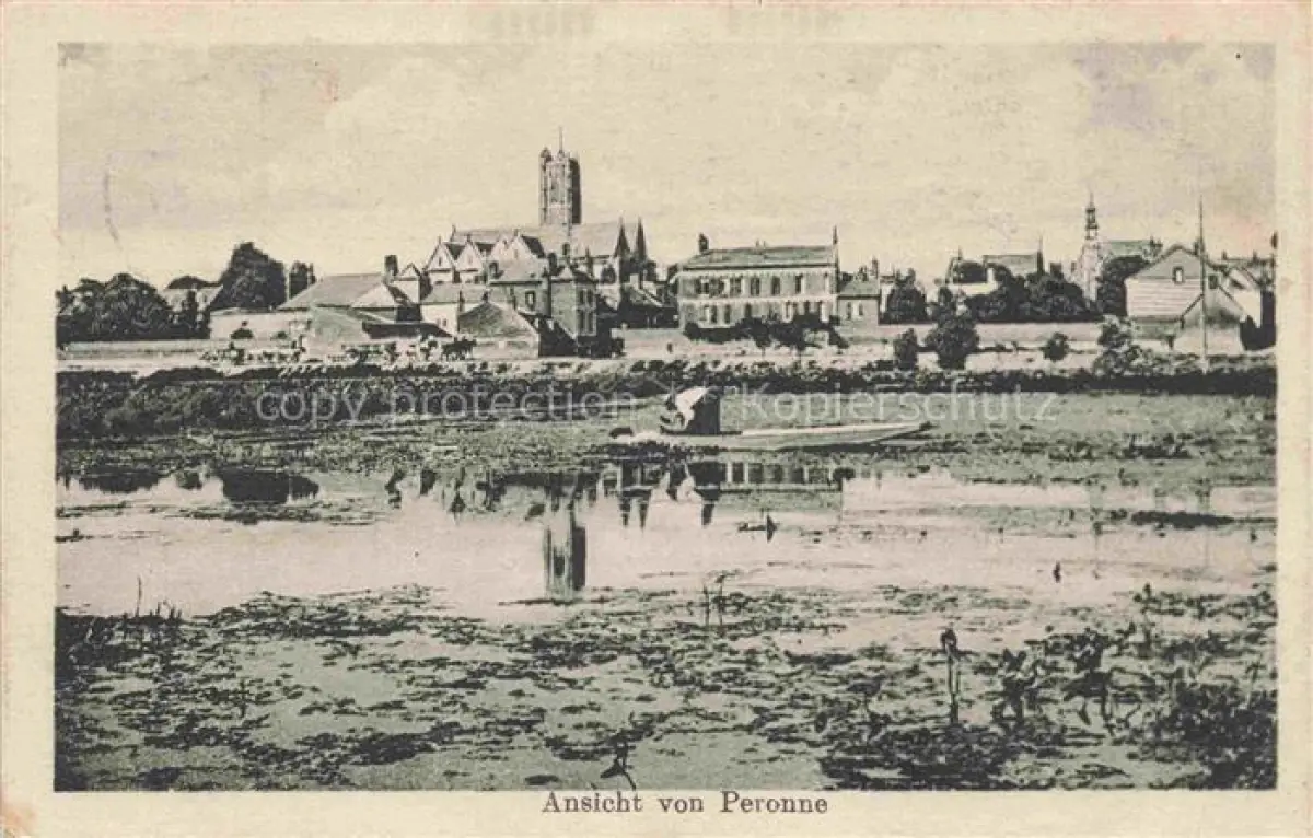14114862 PERONNE 80 Somme Ansicht mit Kirche postalisch gelaufen Feldpostexpedition (Stempel) Erhaltung siehe scans [FriedD77] Feldpostexpedition (Stempel) carte postale Frie Katcode 11170080480620