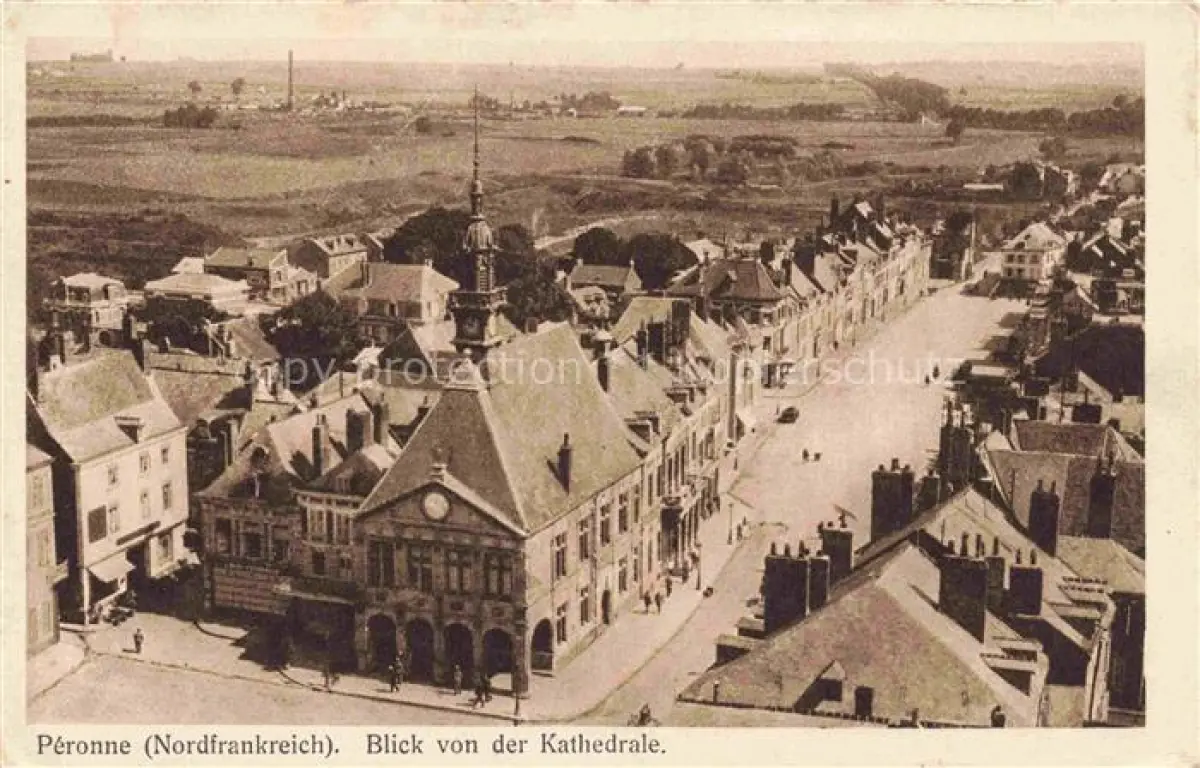 14116038 PERONNE 80 Somme Blick von der Kathedrale Kriegskarte Nr. 2 Feldpost postalisch nicht gelaufen Erhaltung siehe scans [FriedD77] Frie Katcode 11170080480620