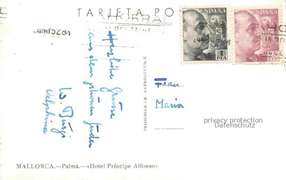 old postcard Palma de Mallorca ES Hotel Principe Alfonso postalisch gelaufen Erhaltung siehe scans [FriedD77]