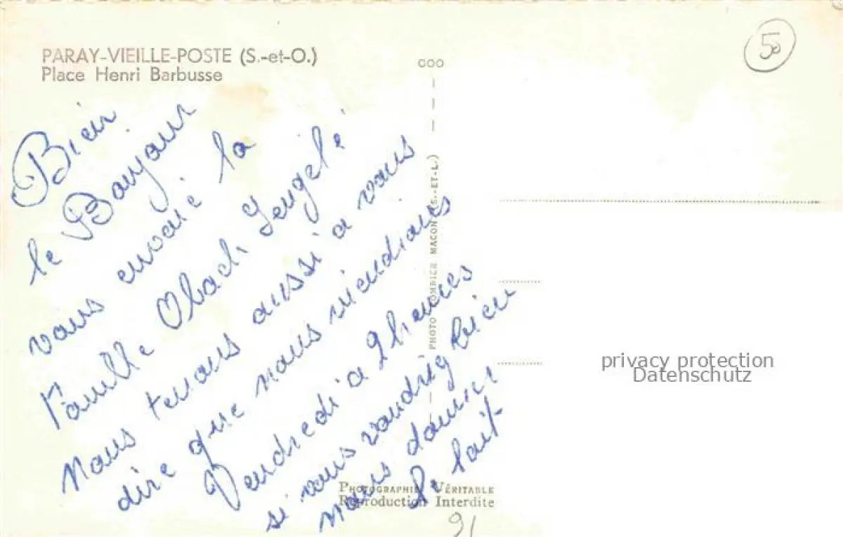14115435 Paray-Vieille-Poste Palaiseau 91 Essonne Place Henri Barbusse postalisch nicht gelaufen Erhaltung siehe scans [FriedD77] Frie Katcode 11170091391479