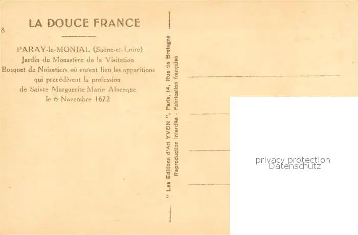 Paray-le-Monial Jardin du Monastère de la Visitation Bosquet de Noisetiers Statue Paray-le-Monial postalisch nicht gelaufen 1921-1965 Erhaltung siehe scans [FriedD77] Frierer