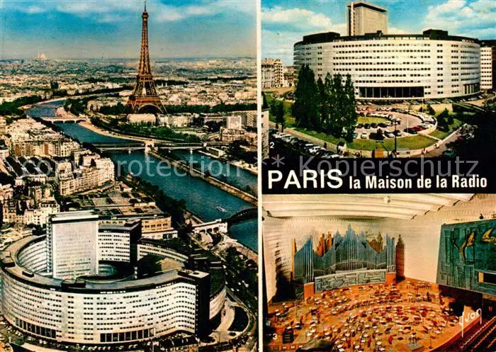 Paris_75 Maison de la Radio et la Tour Eiffel vue aérienne Salle de Concert postalisch nicht gelaufen nach 1965 Fliegeraufnahme Erhaltung siehe scans [FriedD77] Fliegeraufnahme Frierer