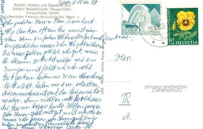 Parsennhuette Dorftaell Abfahrt und Standard Run Weissfluhjoch Skilift Luftseilbahn Parsennhuette postalisch gelaufen 1958 Erhaltung siehe scans [WerneD78] WernPID7