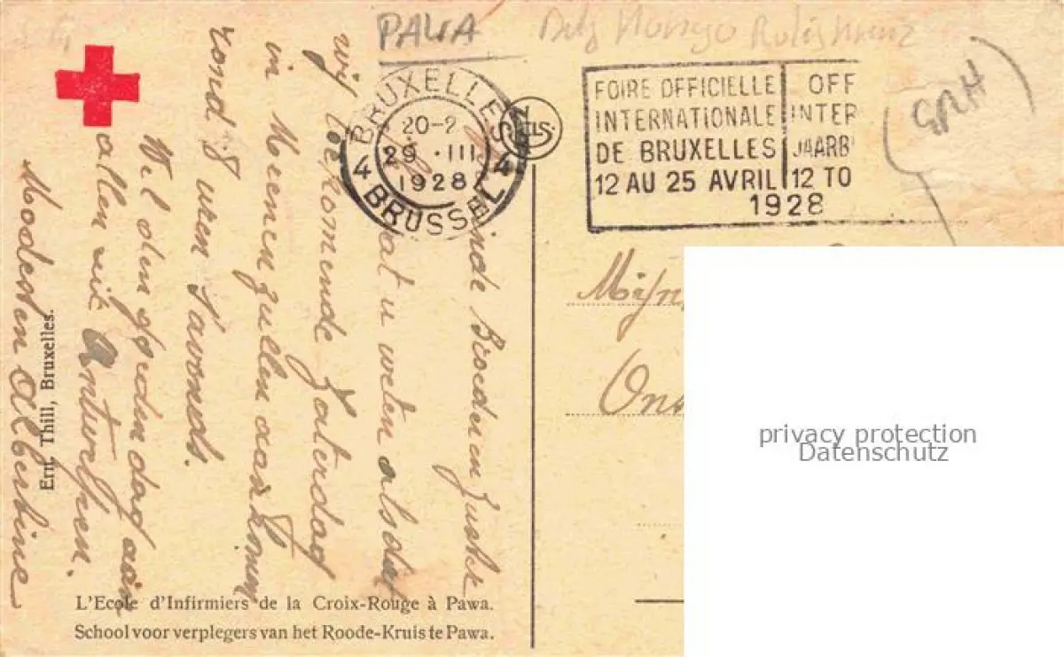 alte Postkarte Pawa Congo Belge Belgisch KONGO School voor verplegers van het Roode Kruis te Pawa postalisch gelaufen Erhaltung siehe scans [WerneD78]