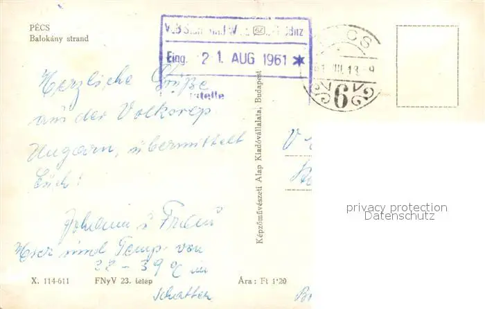 Pecs Balokany strand Pecs postalisch gelaufen 1961 Erhaltung siehe scans [WerneD78] WernPID7