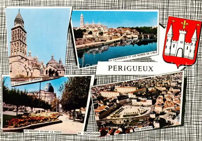 AK / Ansichtskarte Perigueux_24 La Cathedrale St Front La Cathedrale et les bords de l’Isle Les Massifs devant la Poste Vue generale aerienne
