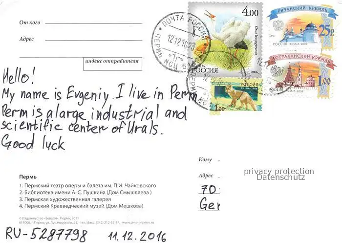 old postcard Perm Theater Oper Balet P.I. Tschajkovskoho postalisch gelaufen Erhaltung siehe scans [IrynaD87]