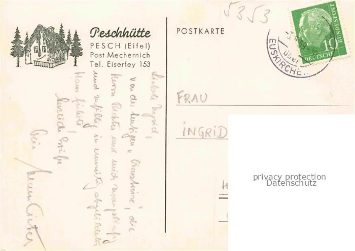 alte Postkarte Pesch Eifel Nettersheim Euskirchen NRW Peschhuette postalisch gelaufen Erhaltung siehe scans [FriedD77]
