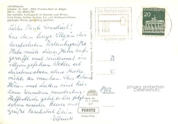 Pfronten Milchhaeusle Terrasse Gaststube Panorama Pfronten postalisch gelaufen nach 1965 Erhaltung siehe scans [WerneD78] WernPID7