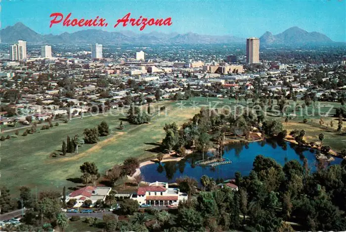 AK / Ansichtskarte Phoenix_Arizona Air view of the North Central Highrise Office Buildings with Camelback Mountain Phoenix Arizona