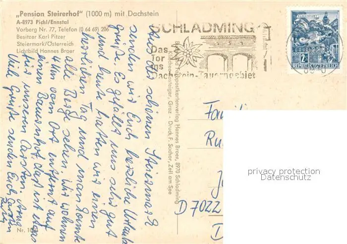 Pichl_Ennstal Pension Steirerhof mit Dachstein Pichl_Ennstal postalisch gelaufen nach 1965 Erhaltung siehe scans [FriedD77] Frierer