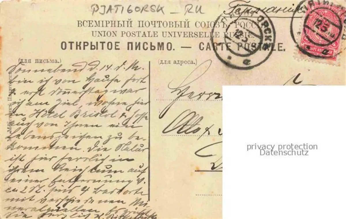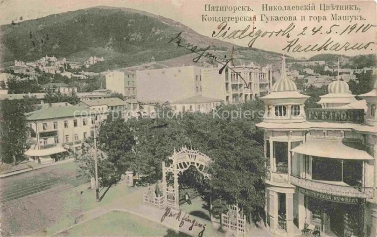 alte Postkarte Pjatigorsk Motiv im Stadtzentrum postalisch gelaufen Erhaltung siehe scans [FriedD77]