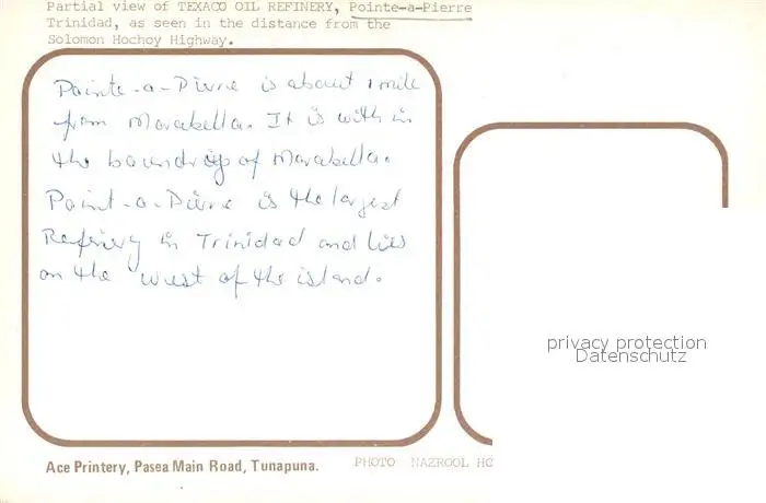 Pointe-a-Pierre Partial view of Texaco Oil Refinery postalisch nicht gelaufen nach 1965 Erhaltung siehe scans [FriedD77] Frierer