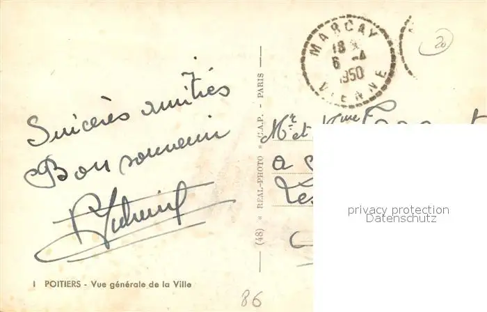 Poitiers_Vienne Vue generale de la Ville Poitiers Vienne postalisch gelaufen 1950 Erhaltung siehe scans [WerneD78] WernPID7