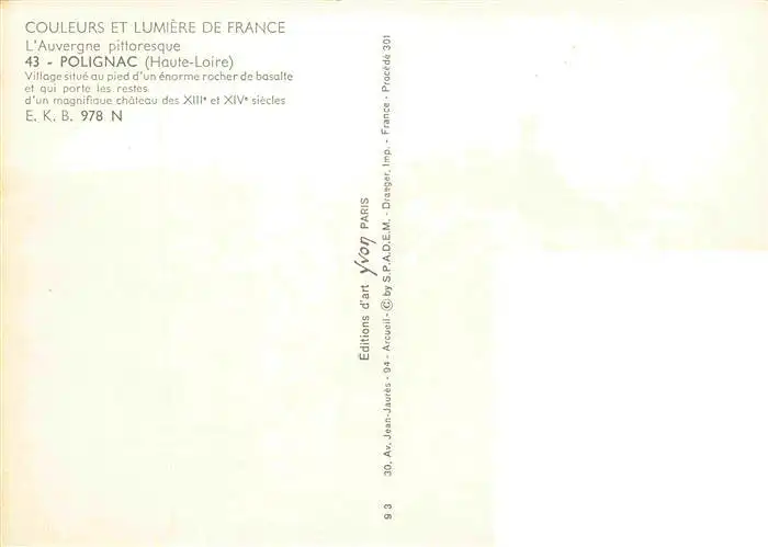 Polignac_Haute-Loire Village situe au pied d'un enorme rocher de basalte et qui porte les restes d'un magnifique chateau Polignac Haute-Loire postalisch nicht gelaufen nach 1965 Erhaltung siehe scans [WerneD78] WernPID7