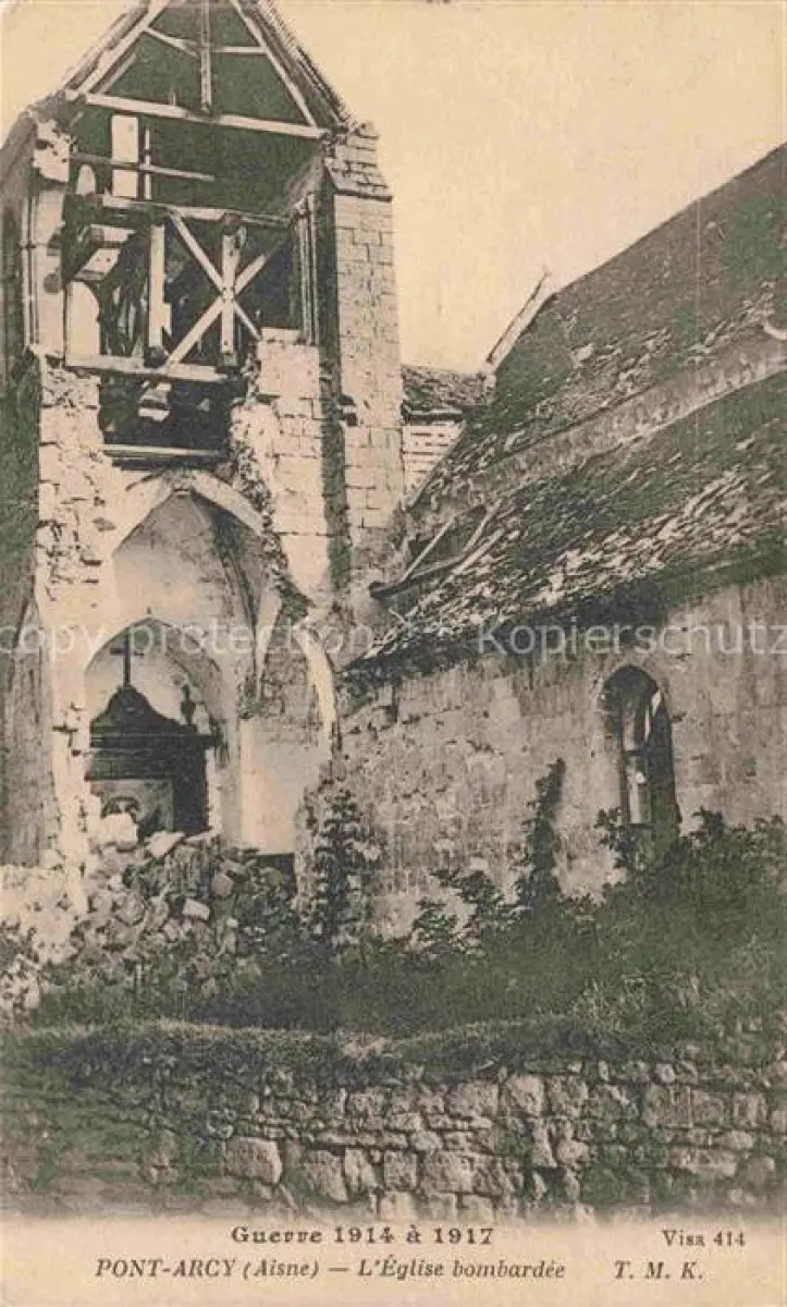 Pont-Arcy Soissons 02 Aisne Eglise apres bombardee postalisch nicht gelaufen Erhaltung siehe scans [WerneD78]