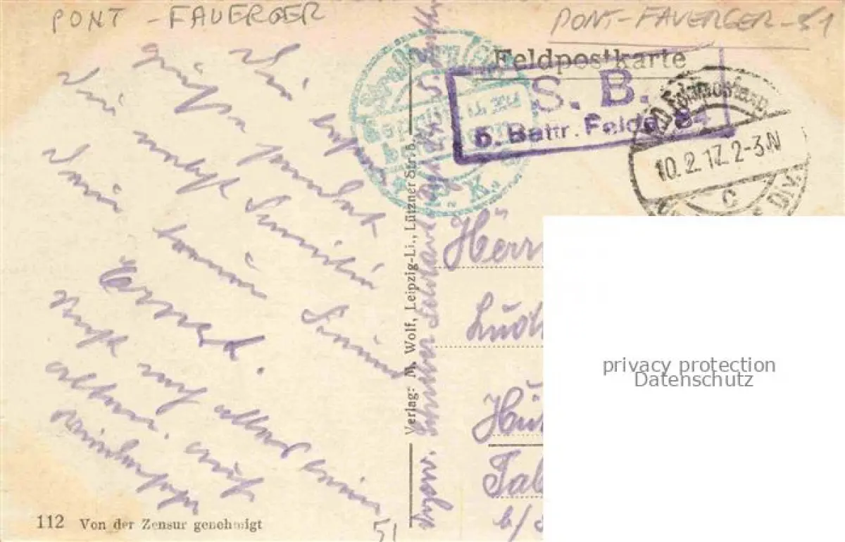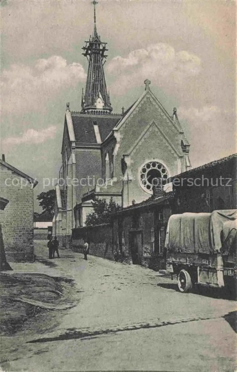 carte postale Pont-Faverger Pontfaverger Annecy 74 Haute-Savoie Blick zur Kirche Zensurstempel postalisch gelaufen Feldpostexpedition (Stempel) Erhaltung siehe scans [FriedD77]