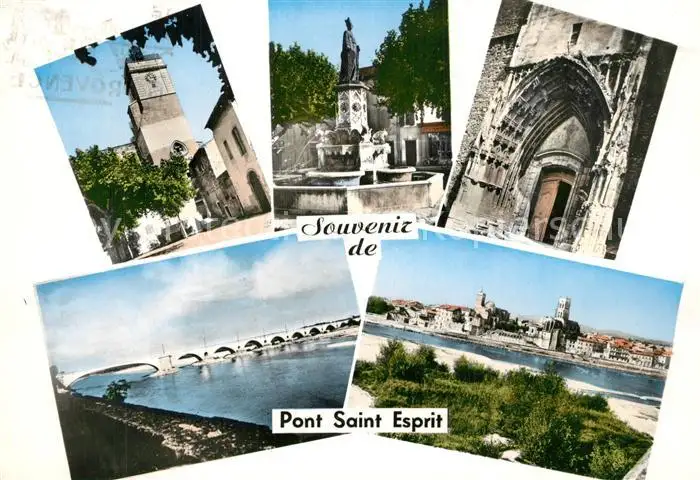 AK / Ansichtskarte Pont Saint Esprit Le Beffroi Pont Fontaine de la Navigation Entree de l eglise vue generale Pont Saint Esprit