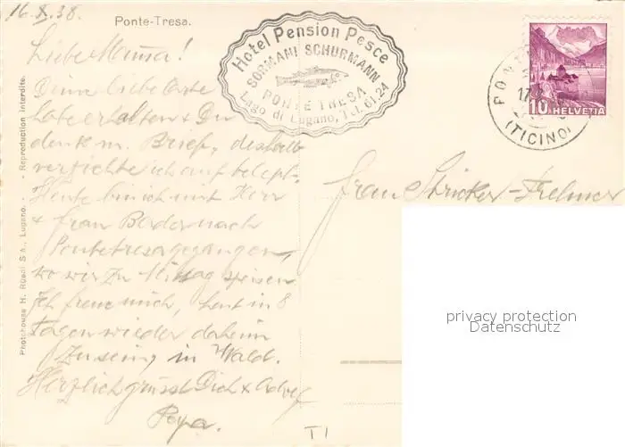 Ponte-Tresa_TI Panorama postalisch gelaufen 1938 Erhaltung siehe scans [WerneD78] WernPID7