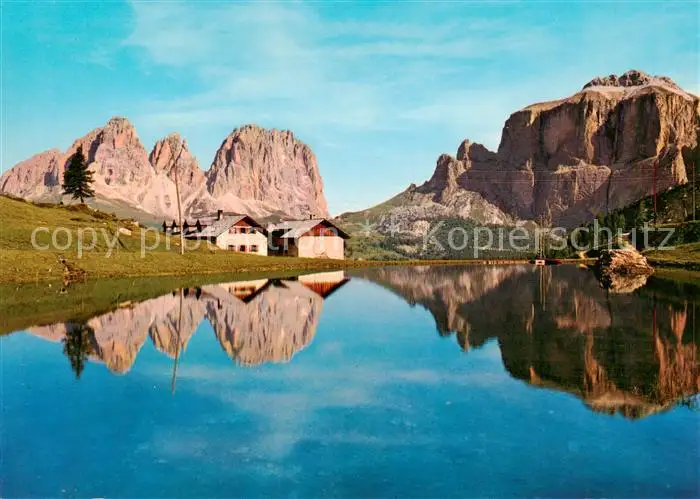 AK / Ansichtskarte Pordoipass Strada Pardoi col Sassolungo Gruppo Sella Langkofel Sellagruppe Bergsee Dolomiten Pordoipass