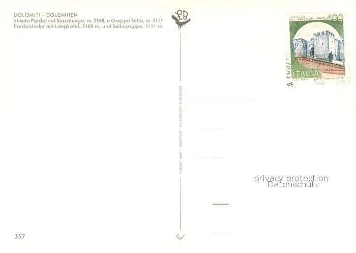 Pordoipass Strada Pardoi col Sassolungo Gruppo Sella Langkofel Sellagruppe Bergsee Dolomiten Pordoipass postalisch nicht gelaufen nach 1965 Erhaltung siehe scans [FriedD77] Frierer