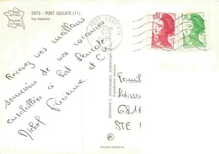 Port_Leucate_11 Vue aérienne postalisch gelaufen 1985 Fliegeraufnahme Erhaltung siehe scans [FriedD77] Fliegeraufnahme Frierer
