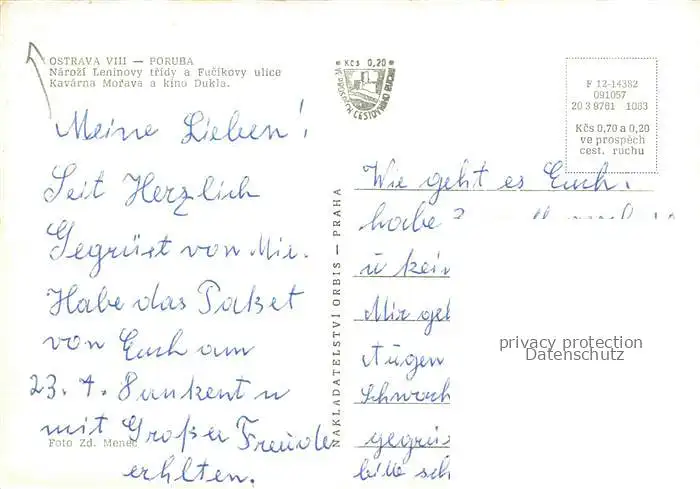14068057 Poruba Narozi Leninovy tridy a Fudikovy ulice Kavarna Morava a kino Dukla postalisch nicht gelaufen Erhaltung siehe scans [FriedD77] Frie Katcode 11520