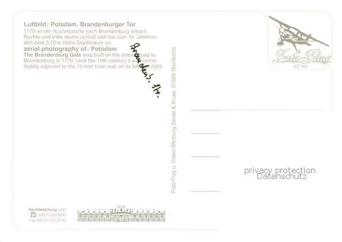 Potsdam Brandenburger Tor Fliegeraufnahme Potsdam postalisch nicht gelaufen nach 1965 Erhaltung siehe scans [WerneD78] WernPID7