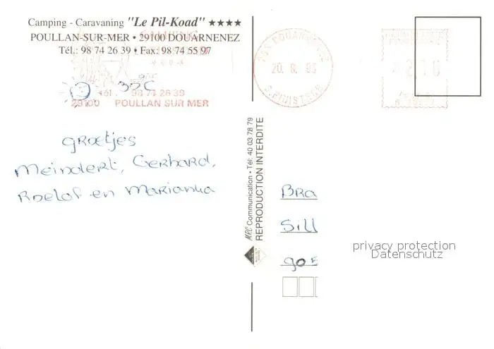 Poullan-sur-Mer Camping le Pil Koad Piscine vue aérienne Poullan-sur-Mer postalisch gelaufen 1993 Erhaltung siehe scans [FriedD77] Frierer
