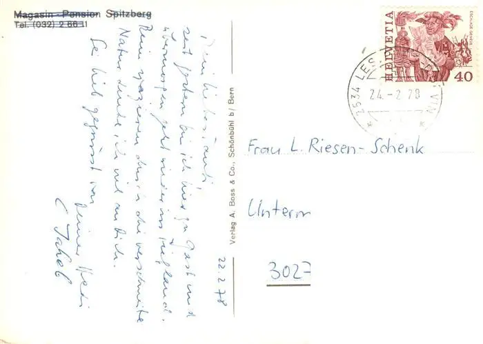 Pres-d_Orvin_BE et_Spitzberg postalisch gelaufen 1978 Erhaltung siehe scans [WerneD78] WernPID7