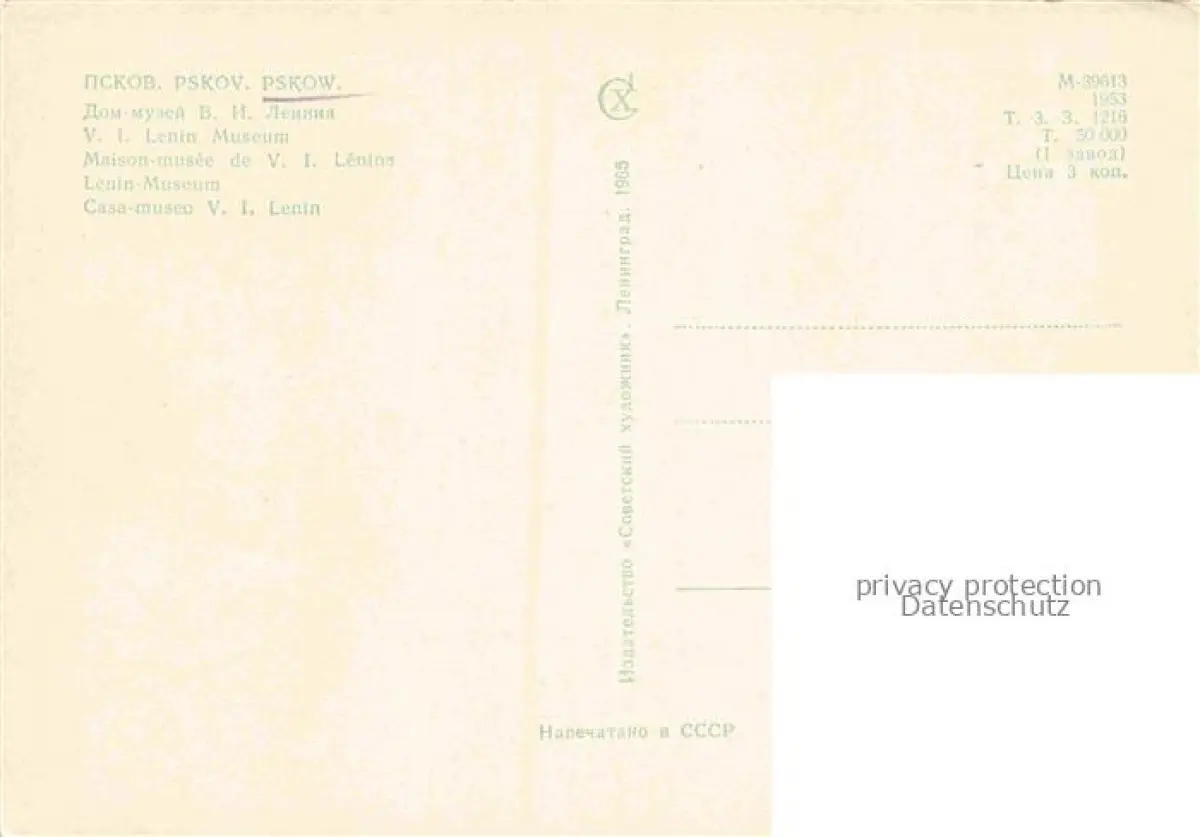 Pskow Pskov Pleskau RU Lenin Museum postalisch nicht gelaufen Erhaltung siehe scans [WerneD78] Wern Katcode 11440