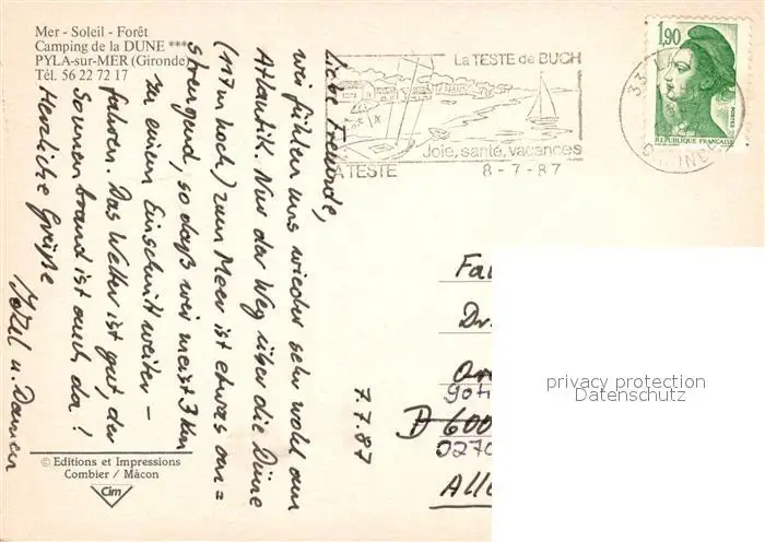 Pyla_sur_Mer Camping de la Dune vue aérienne Pyla_sur_Mer postalisch gelaufen 1987 Erhaltung siehe scans [FriedD77] Frierer