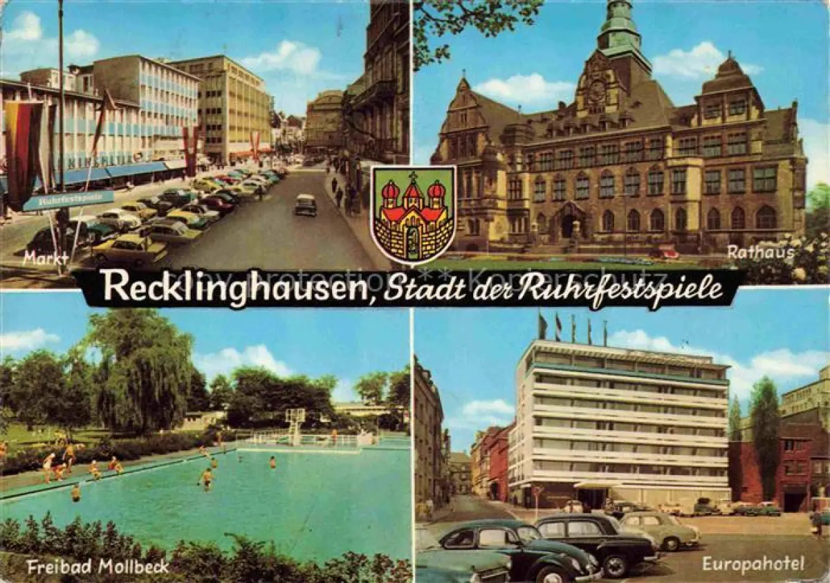 AK / Ansichtskarte RECKLINGHAUSEN NRW Markt Freibad Mollbeck Rathaus Europahotel