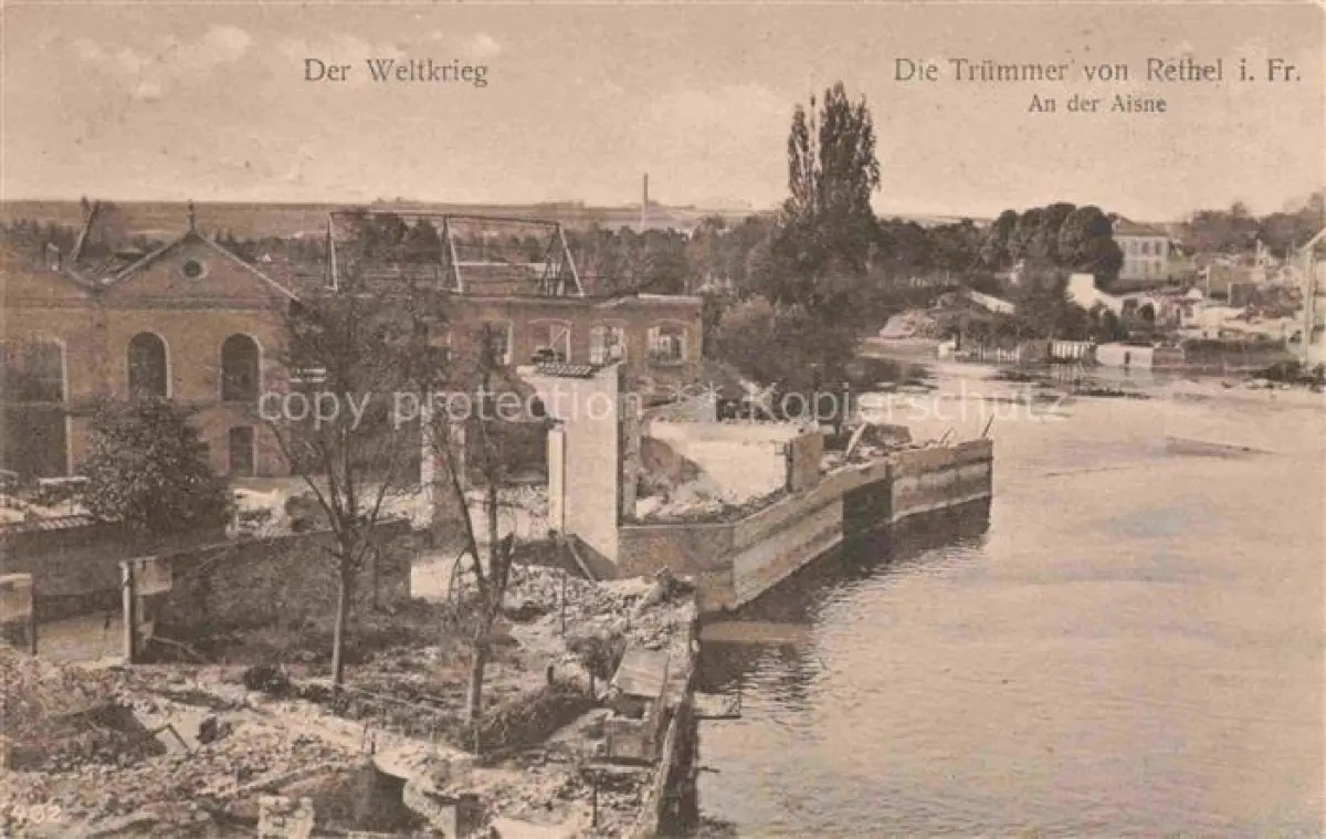 carte postale RETHEL 08 Ardennes Truemmer der Stadt an der Aisne 1. Weltkrieg postalisch gelaufen Feldpostexpedition (Stempel) Erhaltung siehe scans [FriedD77]