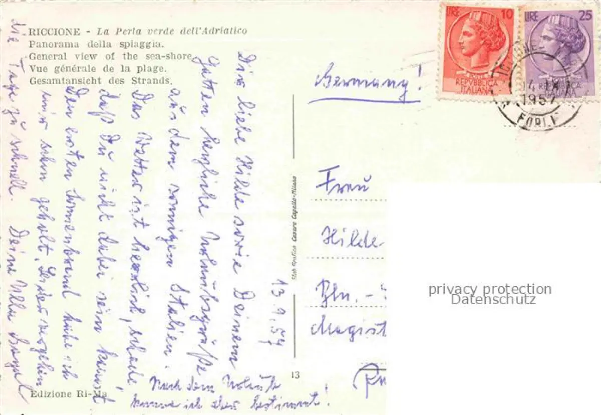 RICCIONE RIMINI IT Strand postalisch gelaufen Erhaltung siehe scans [IrynaD87] old postcard Iryn Katcode 11240