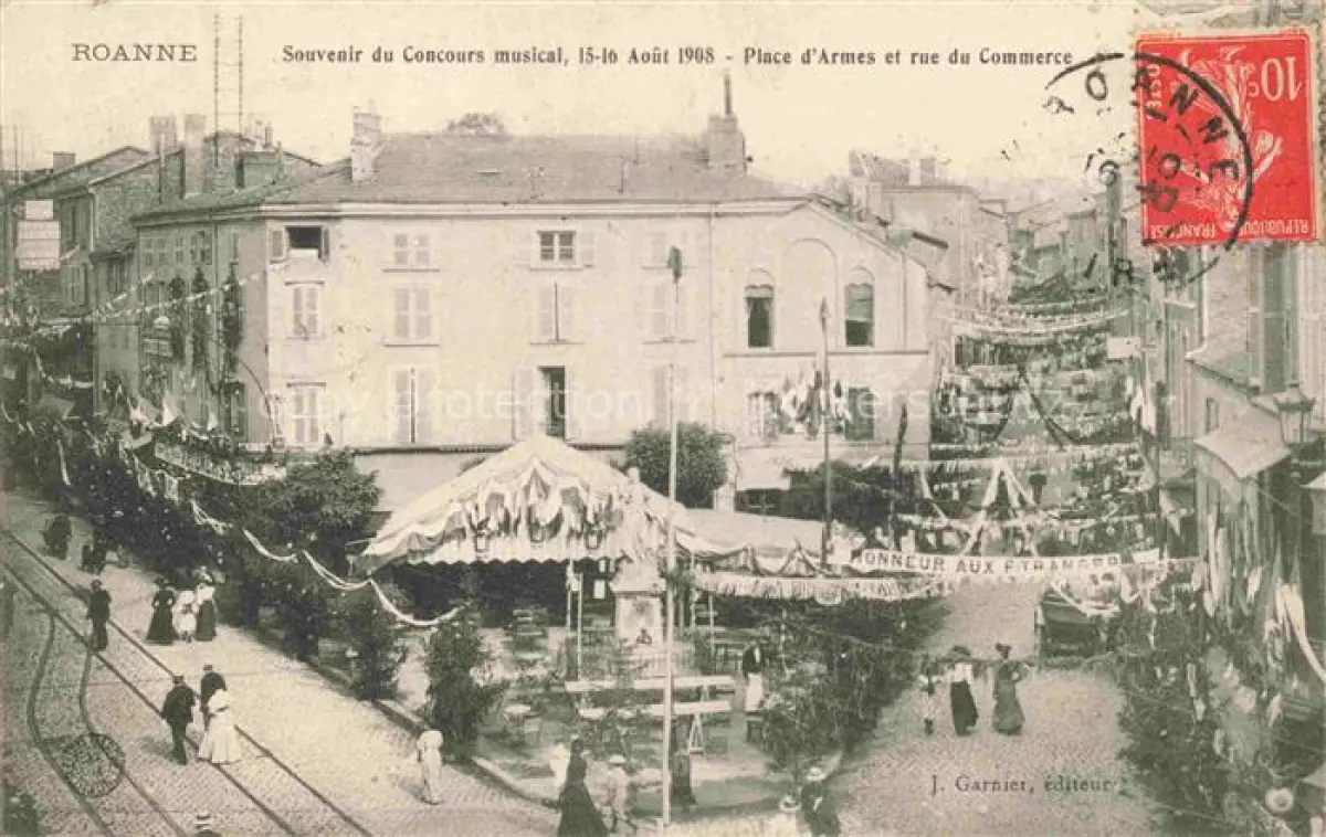 14098363 ROANNE 42 Loire Place d'Armes et Rue du Commerce Concours musical postalisch gelaufen Erhaltung siehe scans [FriedD77] carte postale Frie Katcode 11170042242187
