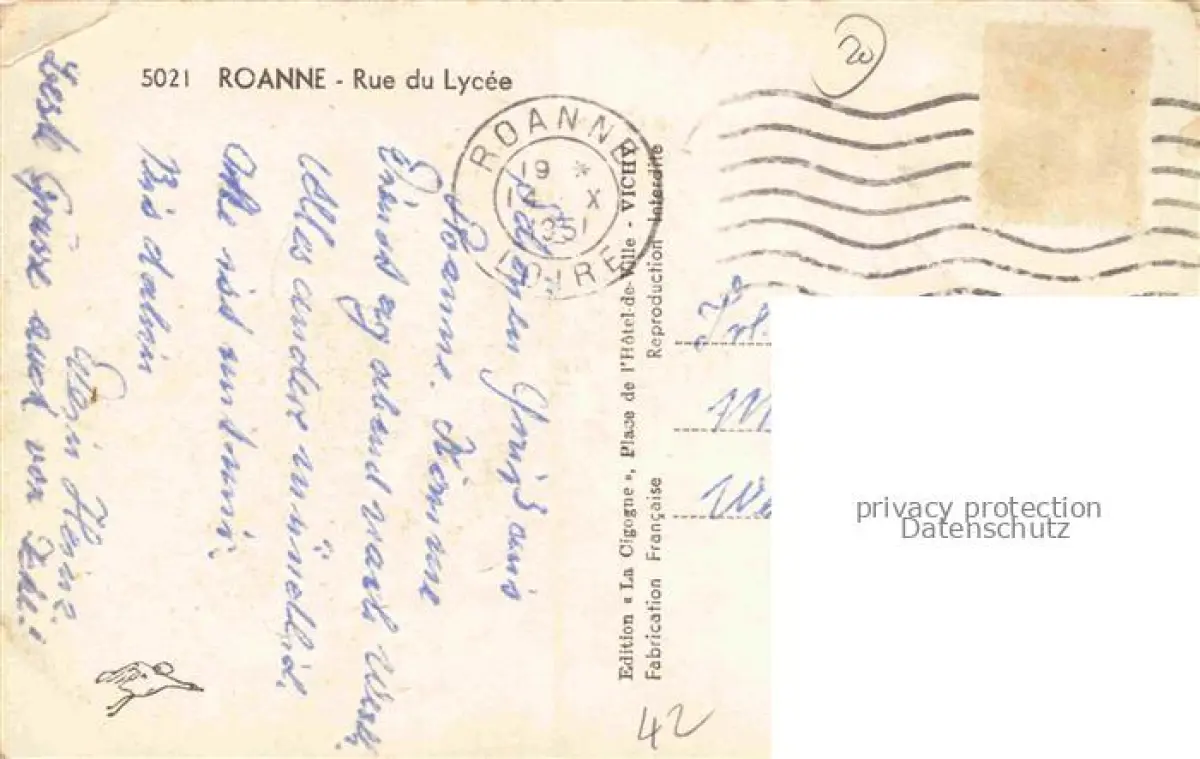 14118807 ROANNE 42 Loire Rue du Lycee postalisch gelaufen Erhaltung siehe scans [WerneD78] carte postale Wern Katcode 11170042242187