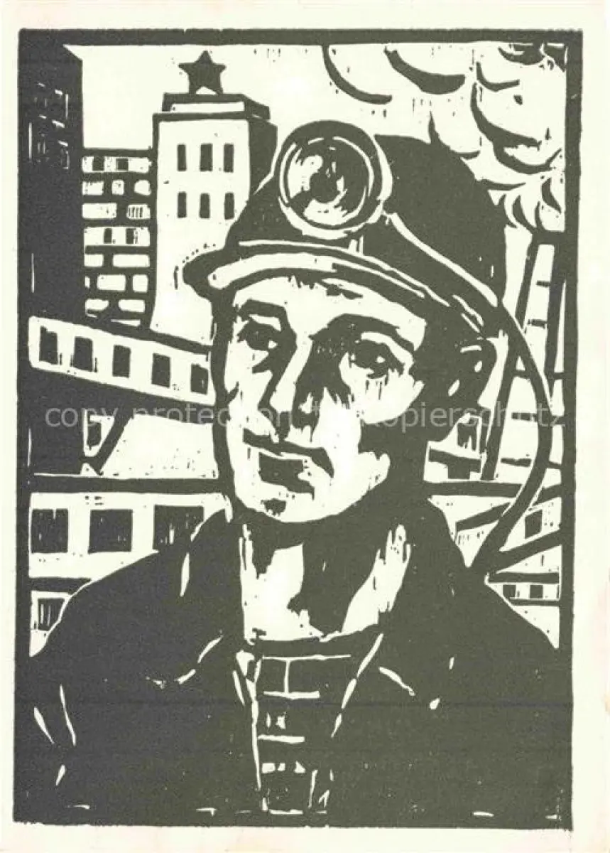 14106596 ROCKTaeSCHEL Helmut Kuenstlerkarte Bergbau Junger Kumpel Holzschnitt postalisch nicht gelaufen Erhaltung siehe scans [SanaeD93] Sana Katcode 22240000003200
