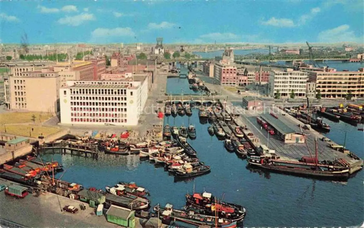 ROTTERDAM NL Blick auf die Stadtmitte und Hafen postalisch gelaufen Fliegeraufnahme Erhaltung siehe scans [FriedD77] Fliegeraufnahme alte Postkarte Frie Katcode 11371500