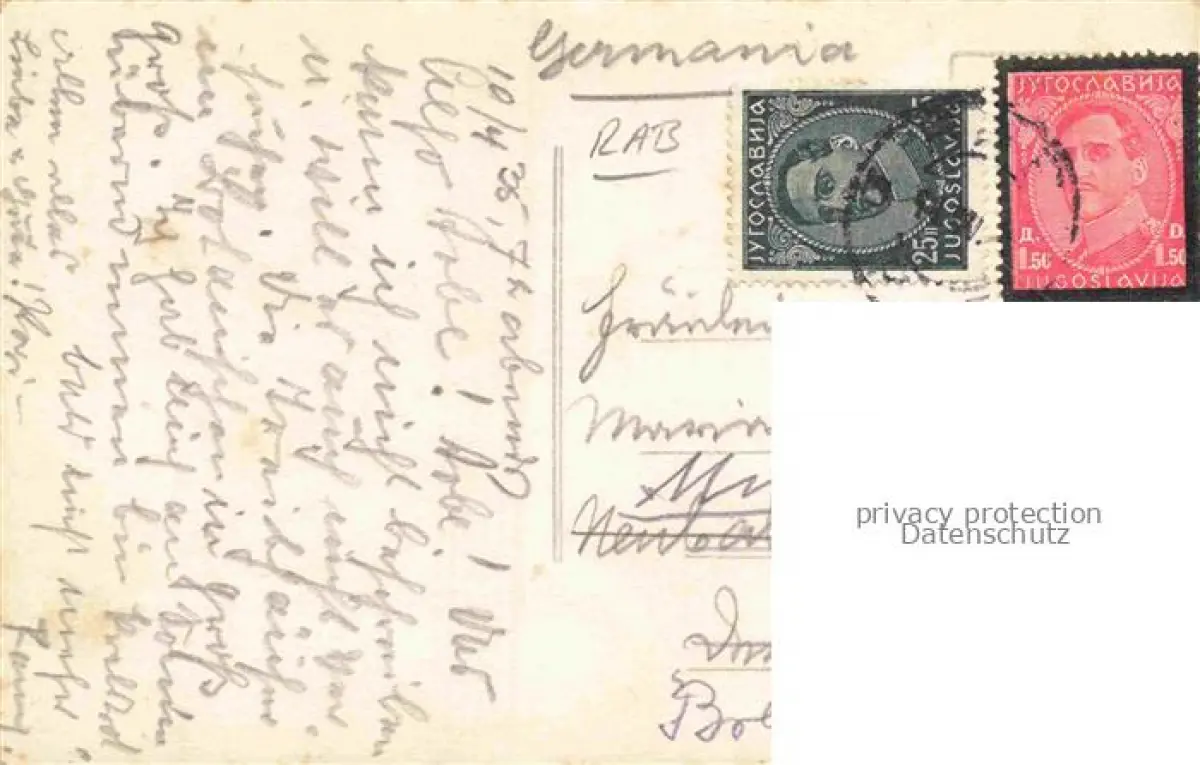 alte Postkarte Rab Croatia Kuestenpanorama Haeuserpartie am Wasser postalisch gelaufen Erhaltung siehe scans [FriedD77]