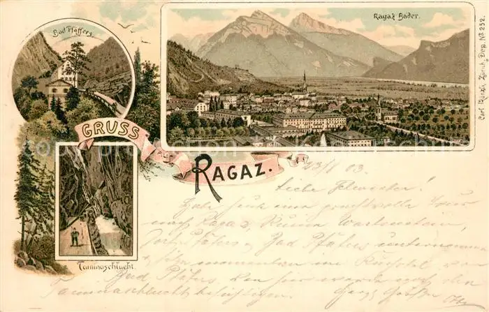 Ragaz_Bad Bad Pfaeffers Taminaschlucht Ragazbaeder Ragaz_Bad postalisch gelaufen 1903 Erhaltung siehe scans [KathaD81] Kathoren