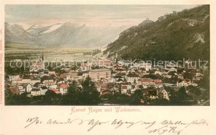 Ragaz_Bad Panorama mit Wartenstein Ragaz_Bad postalisch gelaufen 1900 Erhaltung siehe scans [WerneD78] WernPID7