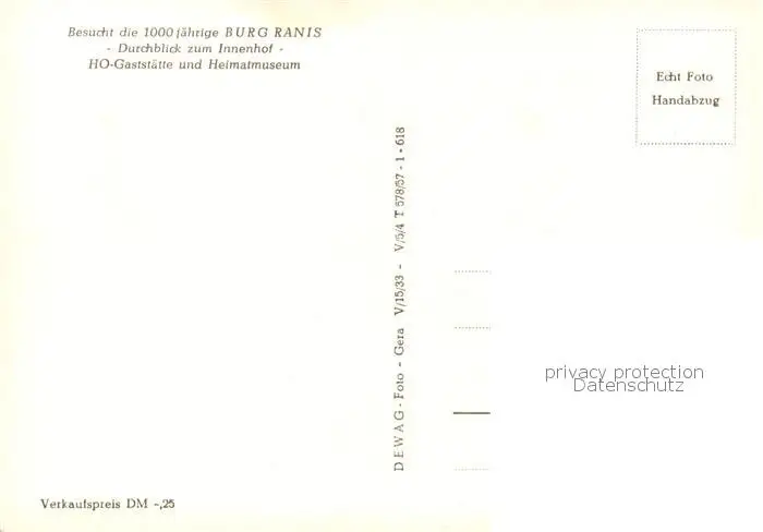 Ranis 1000jaehrige Burg Ranis Durchblick zum Innenhof HO Gaststaette und Heimatmuseum Ranis postalisch nicht gelaufen nach 1965 Erhaltung siehe scans [WerneD78] WernPID7
