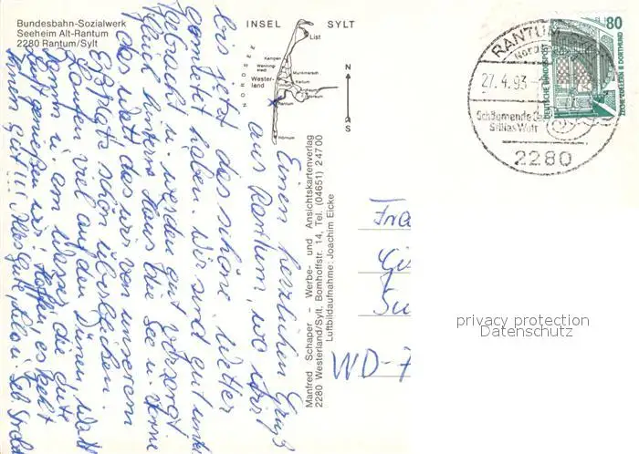 Rantum_Sylt Bundesbahn Sozialwerk Seeheim Alt Rantum Fliegeraufnahme Rantum Sylt postalisch gelaufen 1993 Erhaltung siehe scans [WerneD78] WernPID7