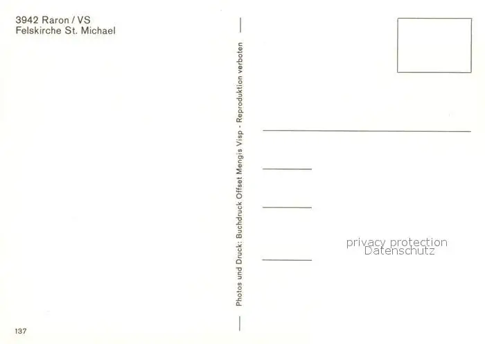 Raron_VS Felskirche Sankt Michael Raron_VS postalisch nicht gelaufen nach 1965 Erhaltung siehe scans [KathaD81] Kathoren