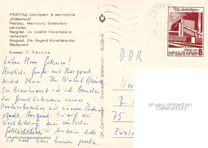 Rasgrad Restaurant in Kovanlaka-Gegend Rasgrad postalisch gelaufen nach 1965 Erhaltung siehe scans [LiesaD40] LiesID40
