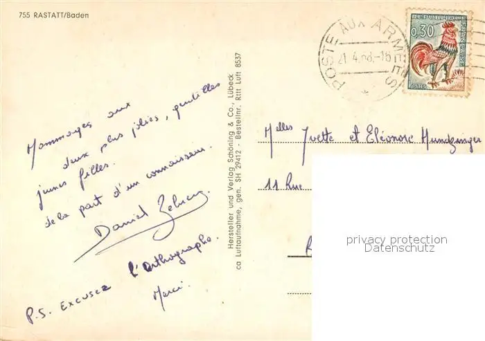 Rastatt Fliegeraufnahme Rastatt postalisch gelaufen 1968 Erhaltung siehe scans [LiesaD40] LiesID40