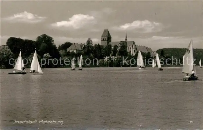 Ratzeburg Blick zur Kirche Inselstadt Naturpark Lauenburgische Seen Segelboote Ratzeburg postalisch nicht gelaufen 1921-1965 Erhaltung siehe scans [FriedD77] Frierer