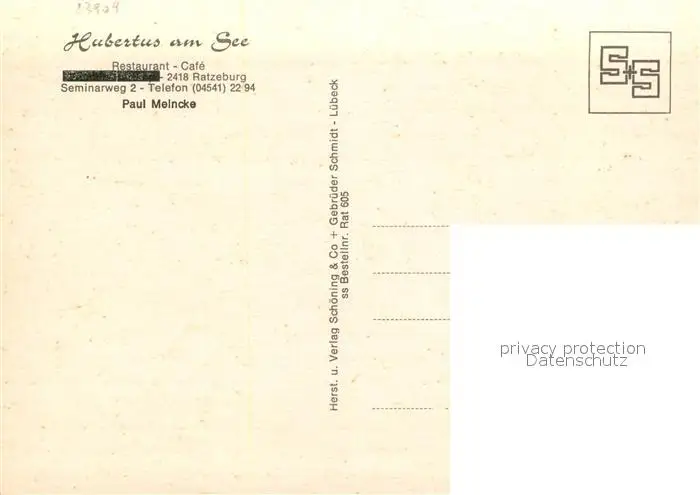 Ratzeburg Restaurant Cafe Hubertus am See Ratzeburg postalisch nicht gelaufen nach 1965 Erhaltung siehe scans [KathaD81] Kathoren